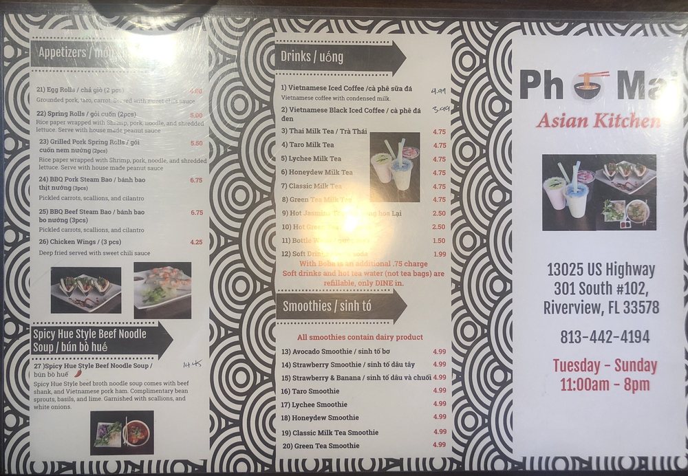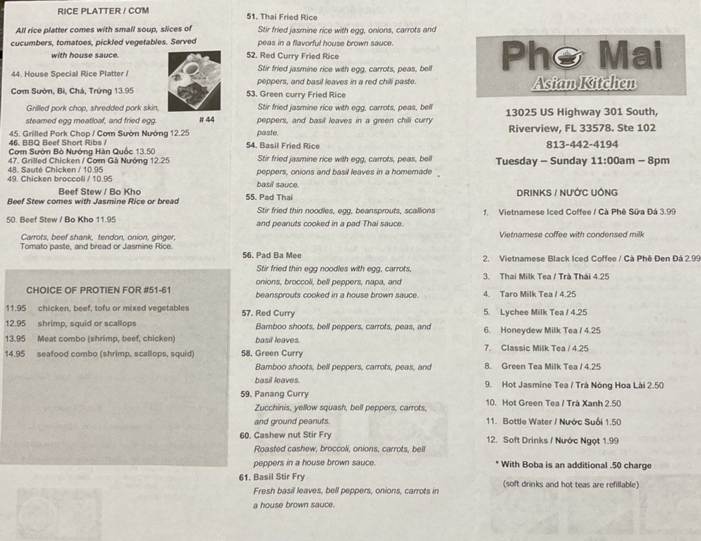 Pho Mai Asian Kitchen Menu (2025 Update)